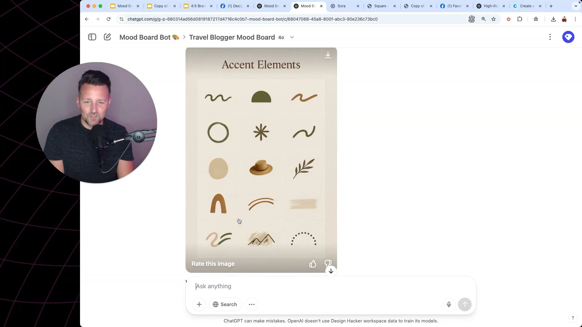 Use ChatGPT to pull out simple shapes, lines, or icons from your mood board. Ask it to create transparent PNG versions. These are perfect for adding flavor to your visuals without overcrowding them.