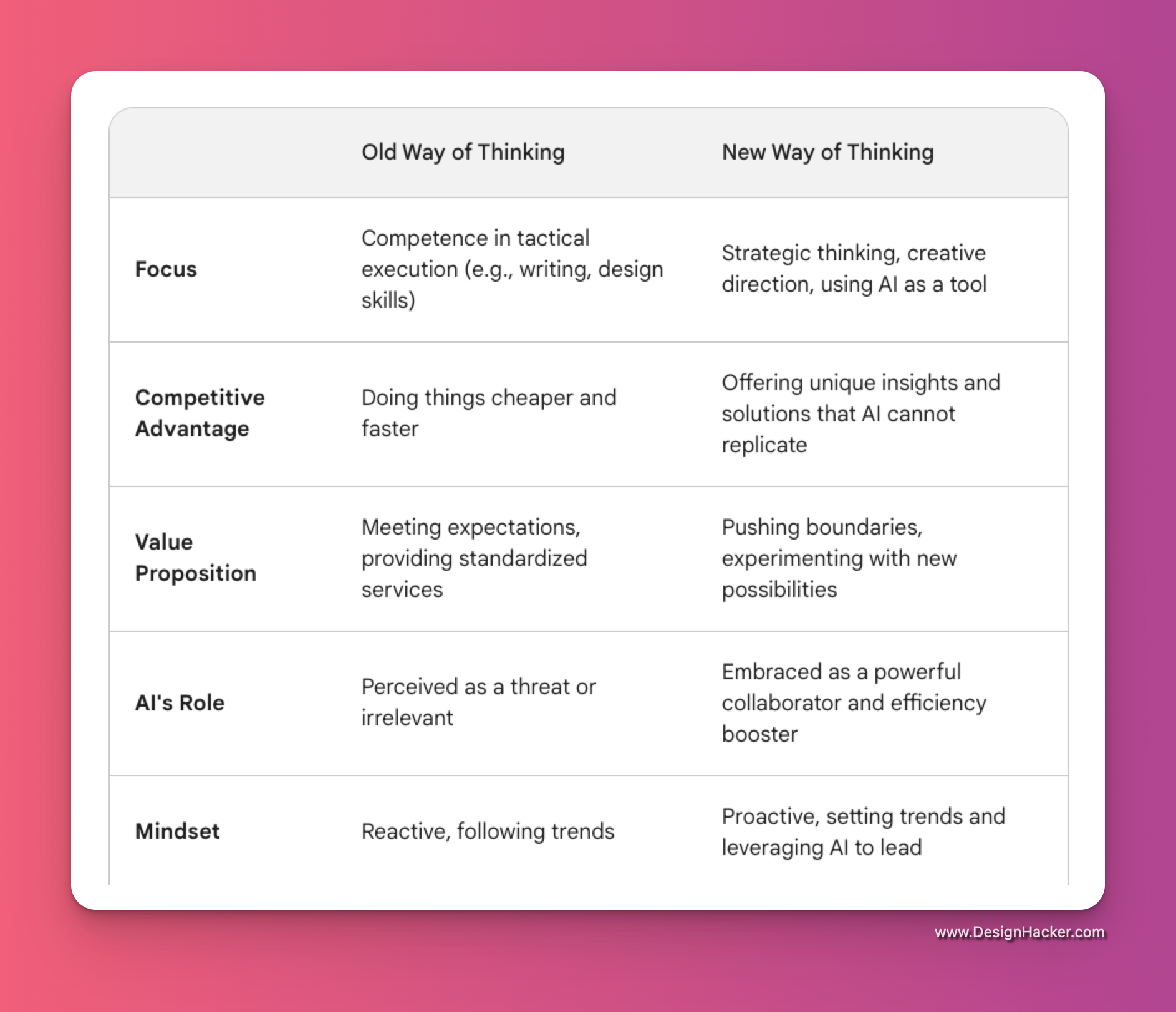 "If you are simply mediocre, I can get an AI to do it cheaper and faster than you. That means the only space left is to not be simply competent, to not simply be what people expect. You have to figure out how to do something that AI couldn't do because that's the only thing worth charging for."