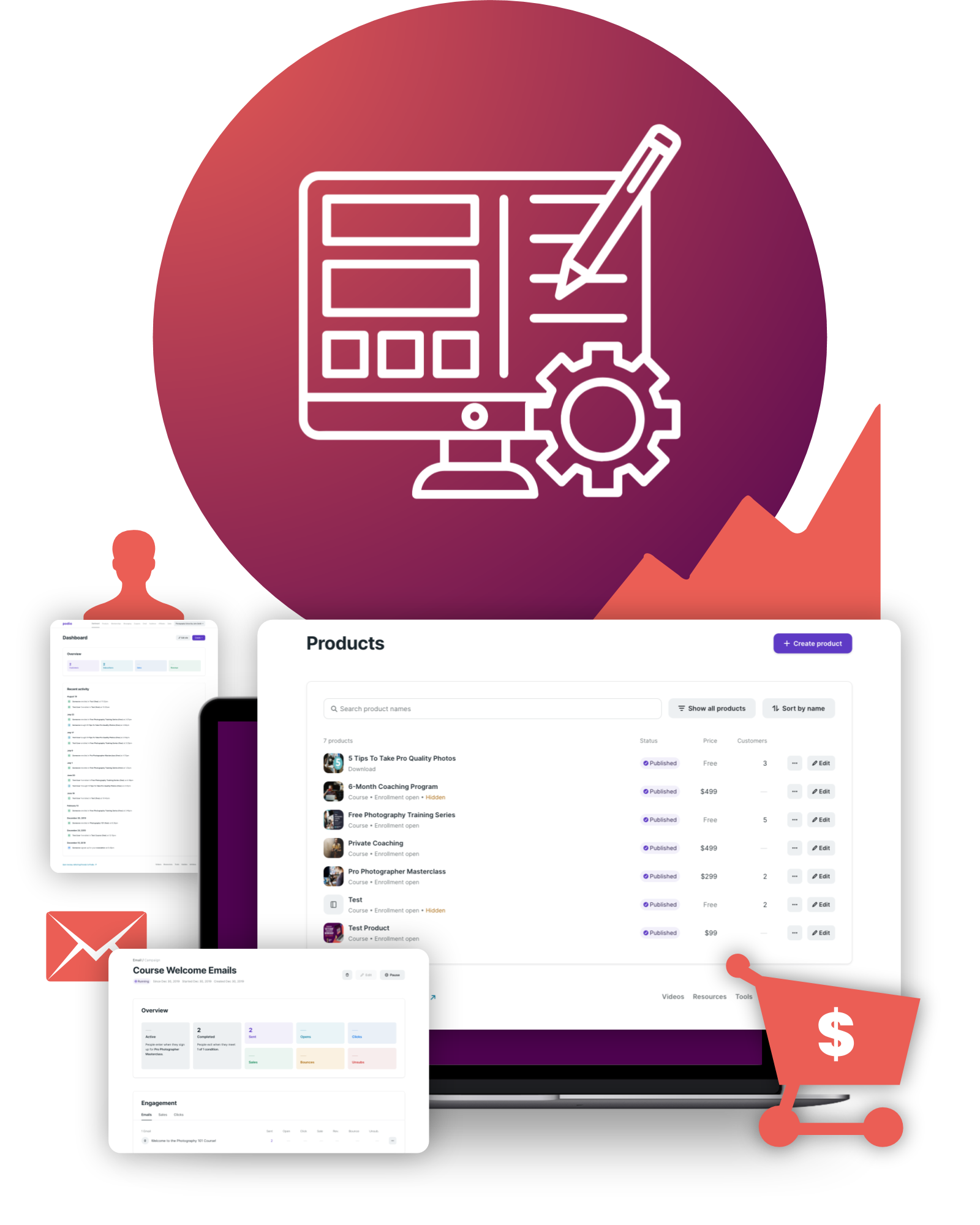 ▶ 20 Minute Video You'll set up a simple all-in-one digital product platform that can host ALL of your digital products, manage ALL of your email communication and even become your ENTIRE website! This will allow you to save money and run your business without the usual technical headaches.