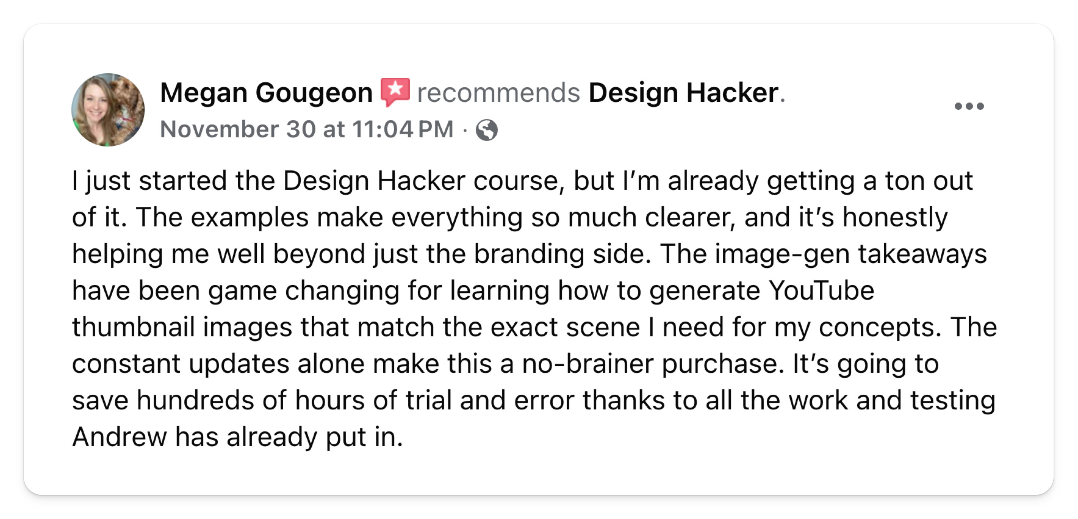 "I love your process. I struggle to get ChatGPT to match the visuals I want, but now it’s obvious... I just need to improve my process."