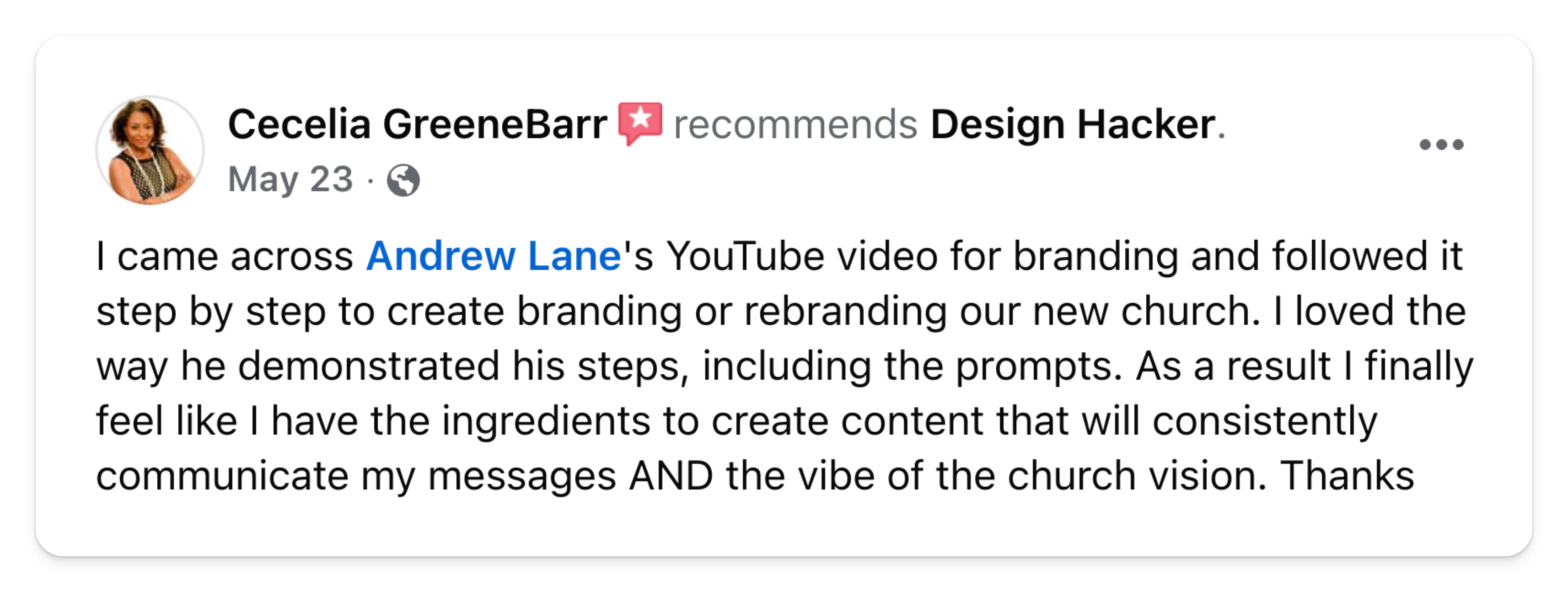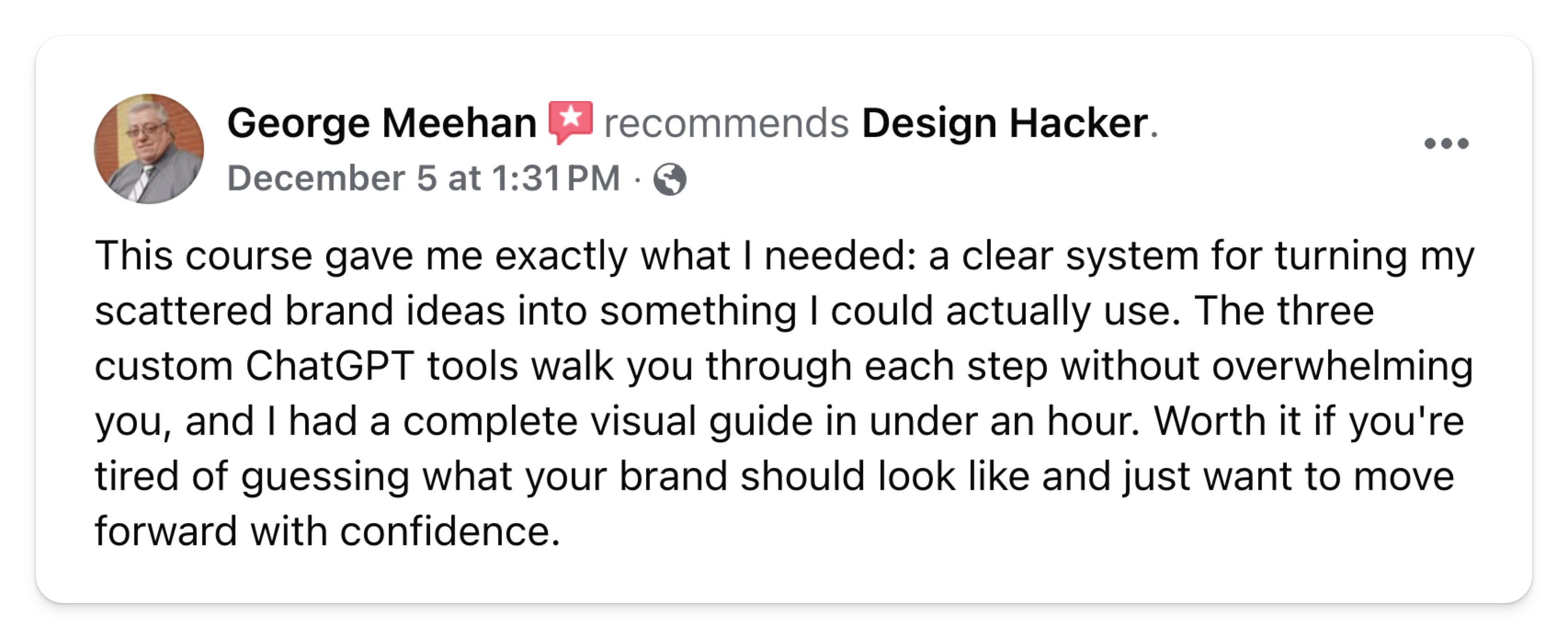 "Wow!! This was so insightful and perfect timing. Just what I needed to help me design my brand."