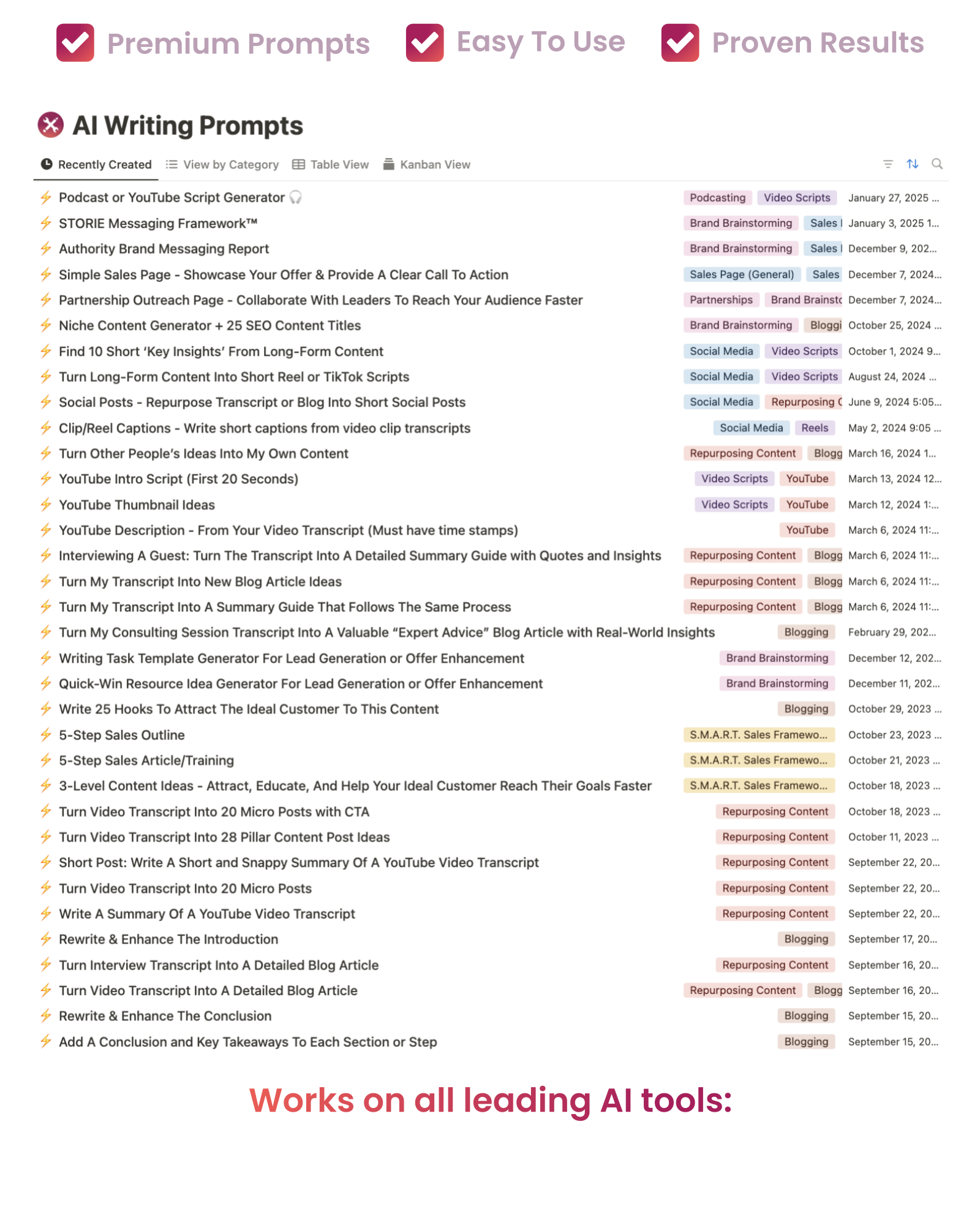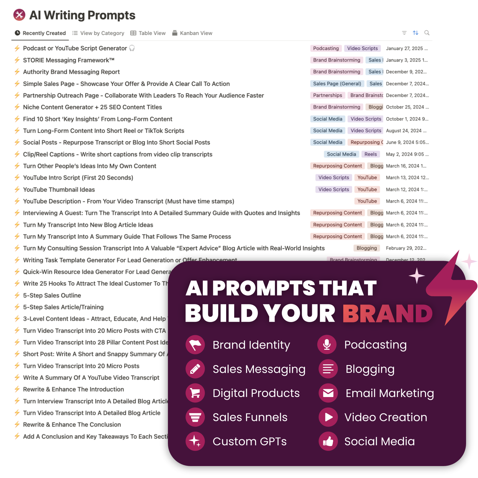 Each strategy has been studied, tested, and refined to help brands grow faster and sell more. Use these prompts to quickly write: