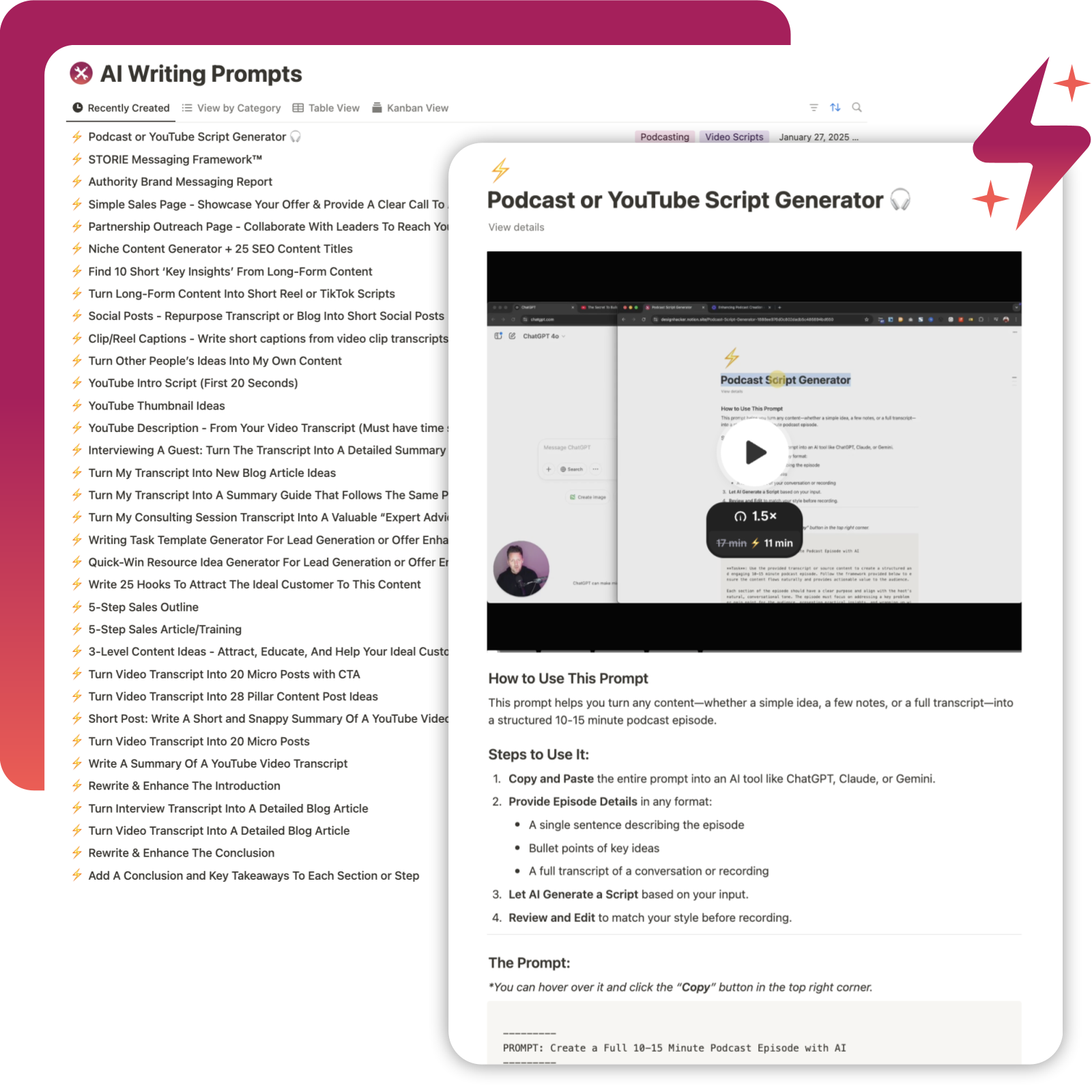 This is just one of the many AI prompts included in the library. Watch how it helps generate a structured, engaging script in seconds - making content creation faster and easier. Whether you're working on sales pages, social posts, or video scripts, the right approach can save time and improve results.