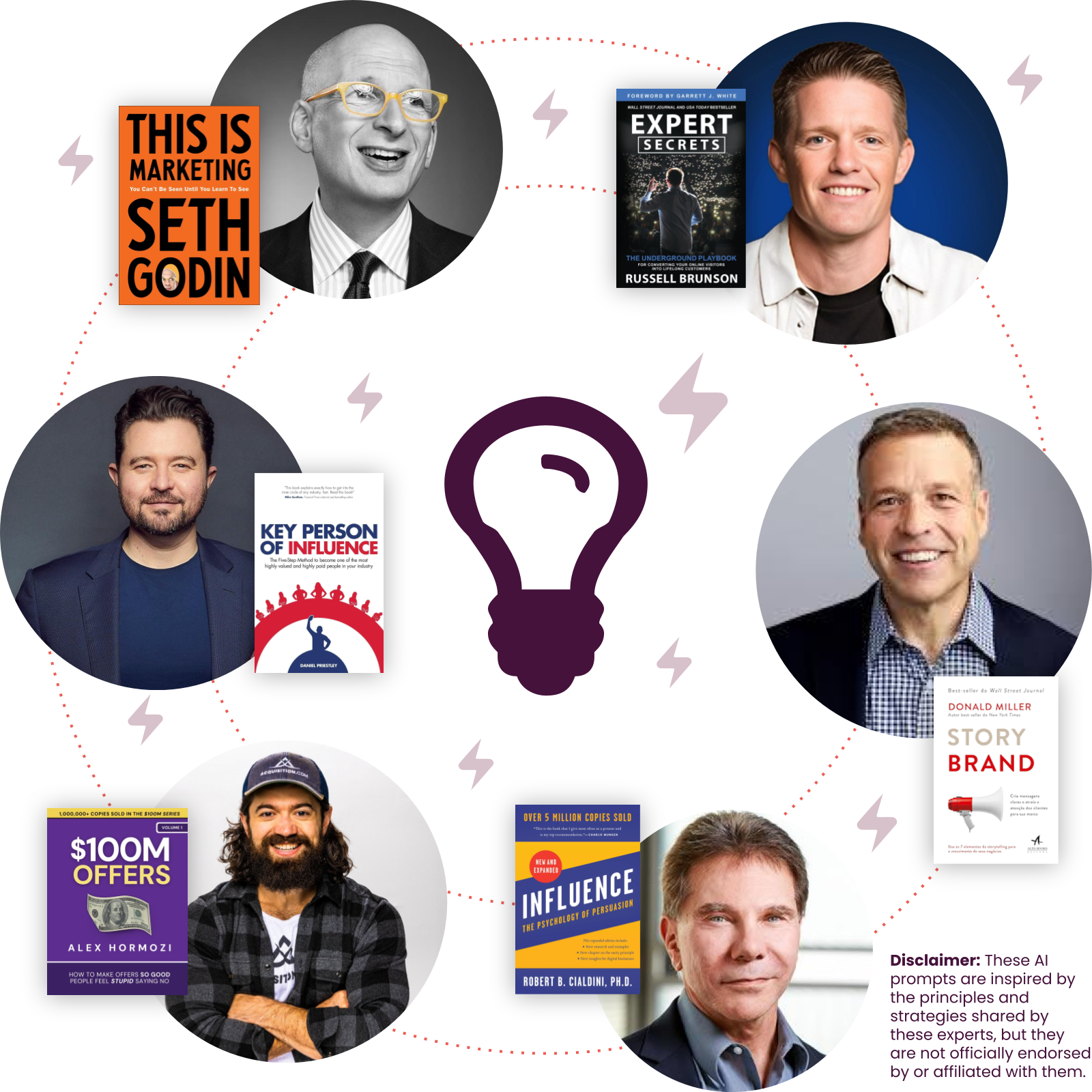 Disclaimer: These AI prompts are inspired by the principles and strategies shared by these experts, but they are not officially endorsed by or affiliated with them.