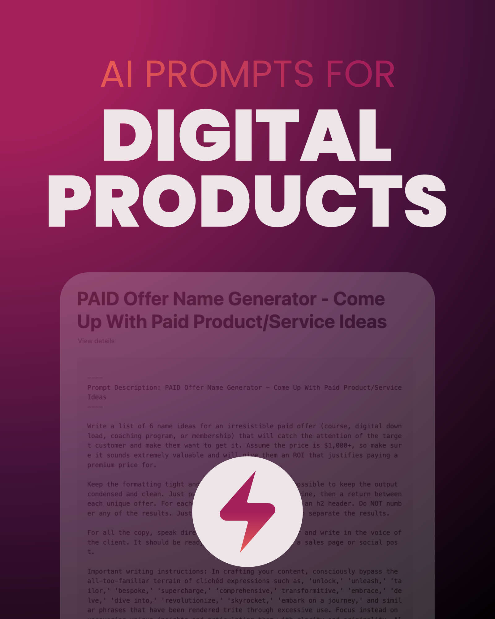 When you buy The Ultimate AI Prompt Library, you’re getting a shortcut to clear, compelling content that attracts the right people and drives sales without the stress.