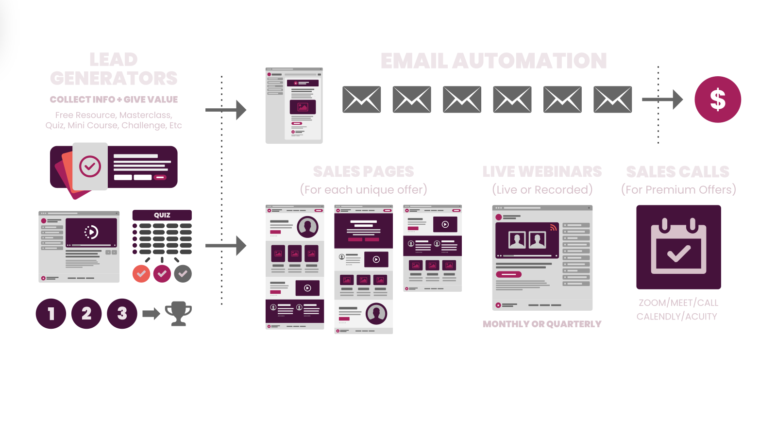 We build the money-making assets. We launch your funnels. We polish your offers. We create the content systems that attract leads. We dial in the messaging so you can convert traffic into customers.