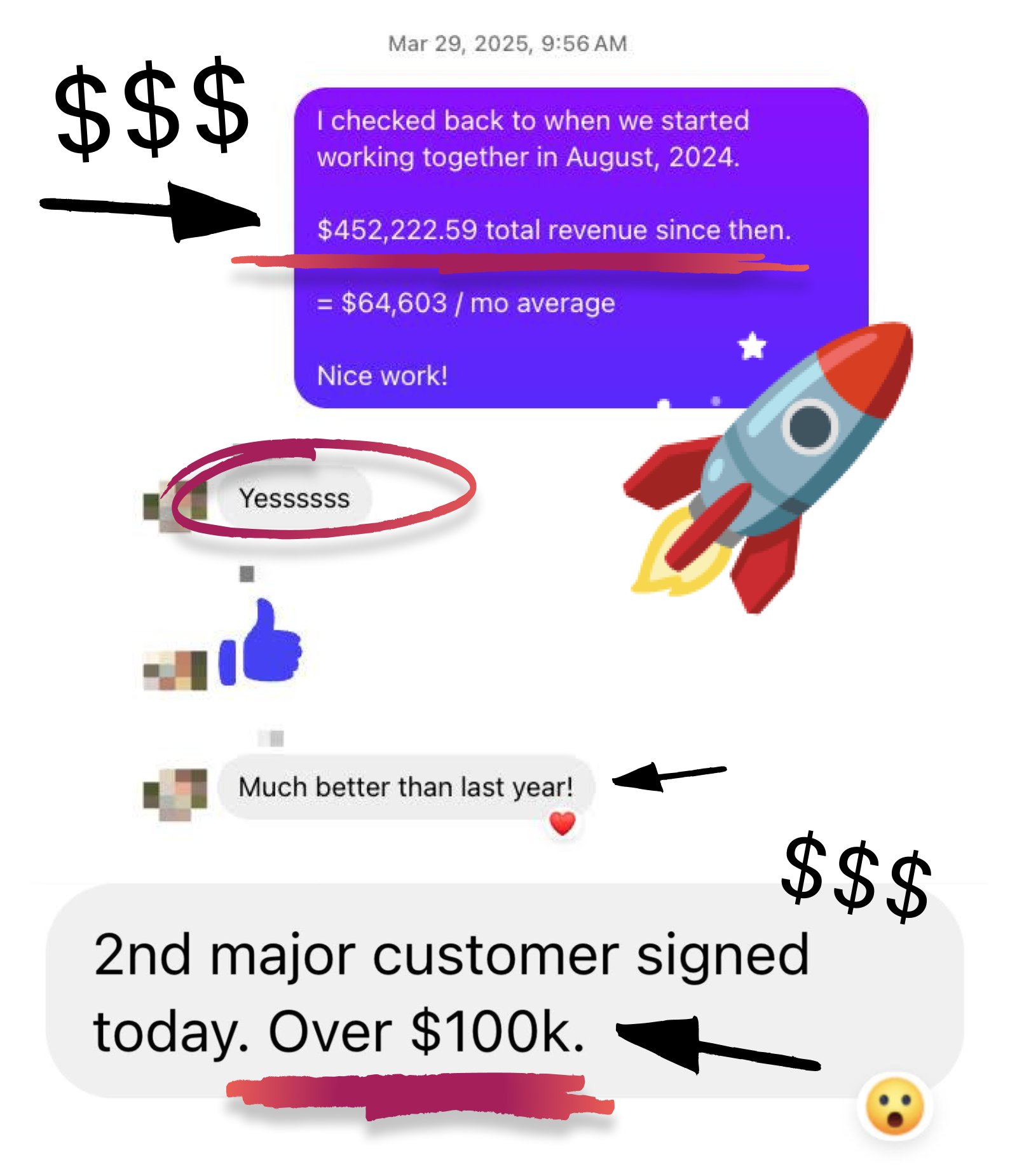 We meet privately once a month to review your progress and set the plan. We make sure you're focusing on the right things. You leave every call with a clear sprint for the next 30 days.